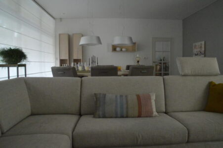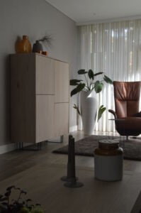 Een compleet nieuw interieur voor de woonkamer van deze villa in Deurne. Als eerste hebben we de sfeer en materiaal bepaald met als uitgangspunt rust en natuurlijke kleuren.